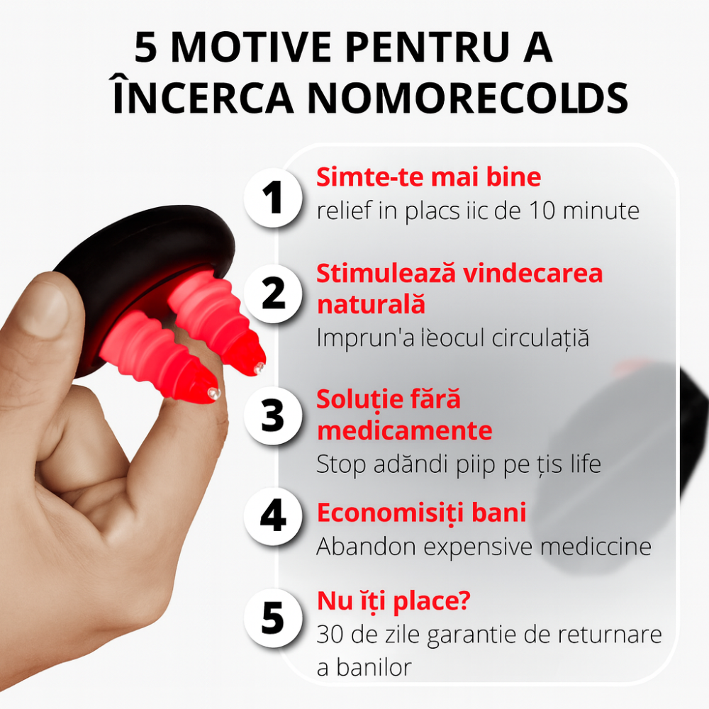 Dispozitivul utilizează lumină roșie de 660 nm pentru a pătrunde în țesutul nazal, a reduce inflamația și a susține recuperarea naturală a celulelor. Doar 10 minute, o dată sau de două ori pe zi — complet sigur, nedureros și fără efecte secundare.
