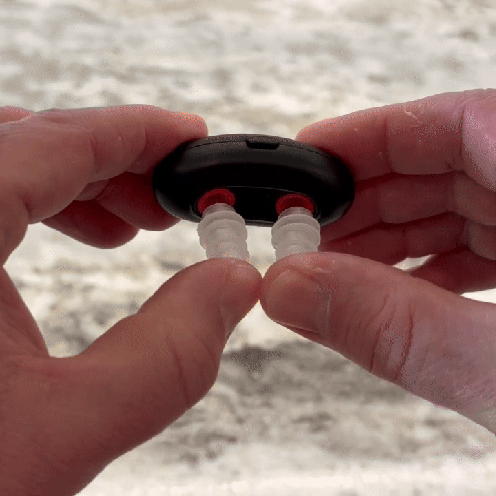 Scoateți ColdAway® Relief, alegeți vârfurile moi din silicon care se potrivesc cel mai bine, atașați-le bine, conectați cablul USB și încărcați-l până la capacitate maximă.